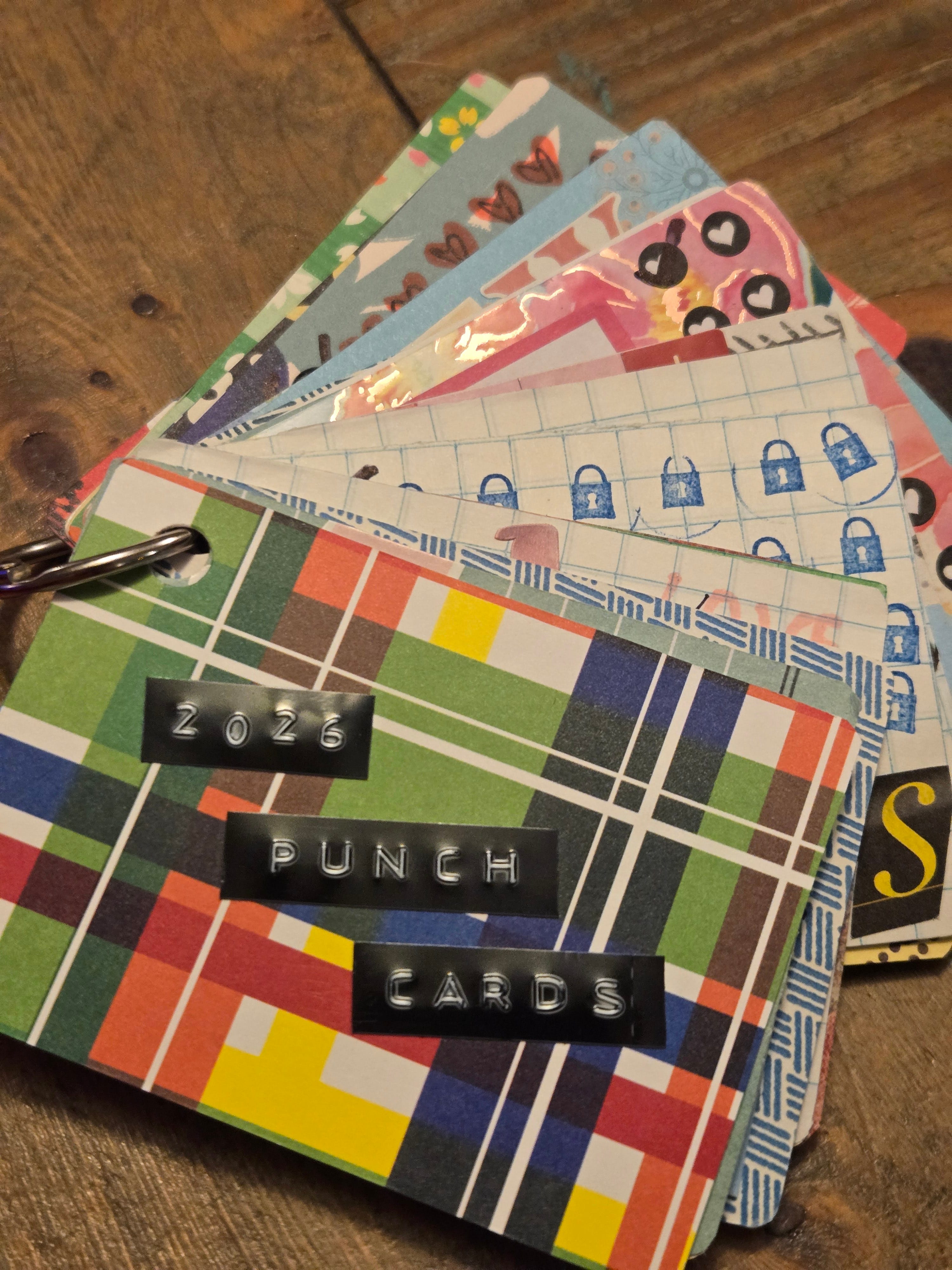 I decided I needed to make goal-keeping fun, so I made some fun punch cards for when I accomplish a goal.